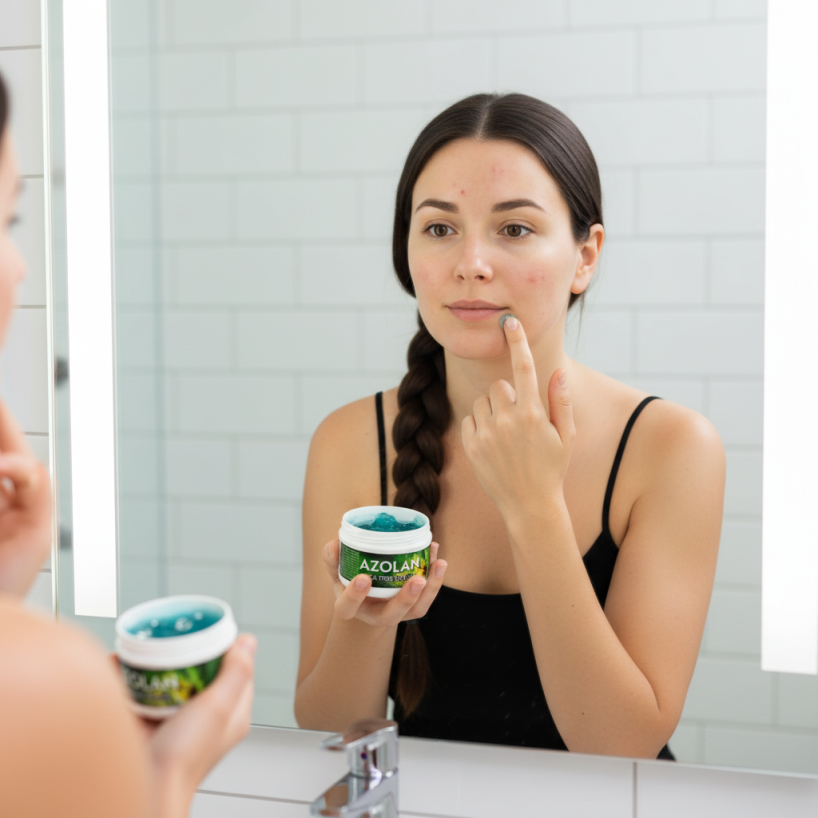 Som spokojná s krémom Azolan, veľmi účinný pri akné, stačí tenká vrstva krému a akné je na druhý deň na ústupe. Odporúčam na problematickú pleť s akné.