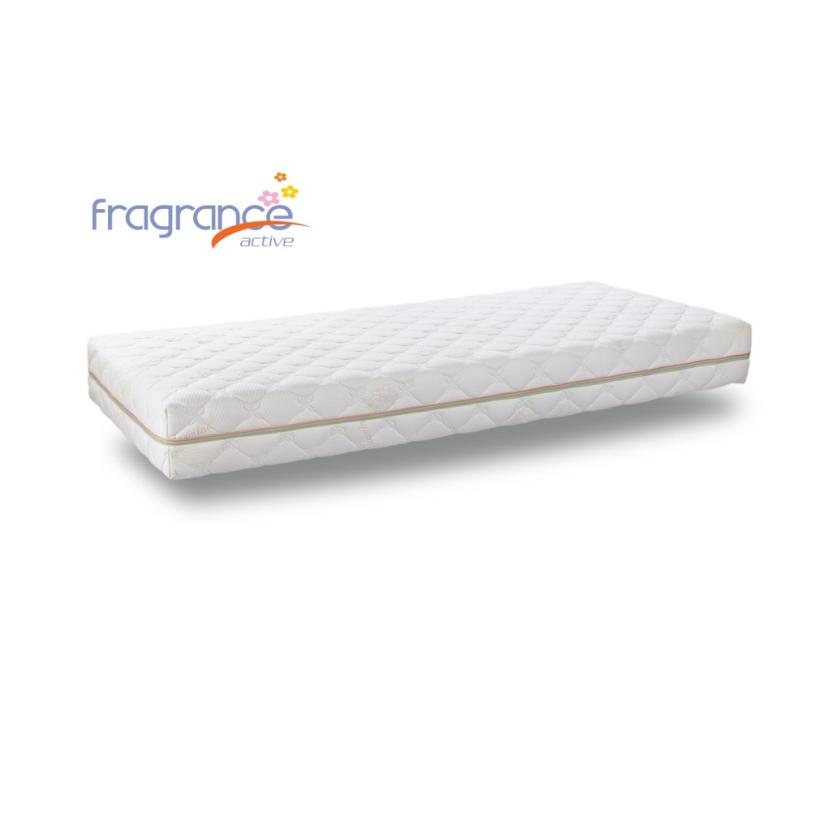 Zdravotný matrac Jasmine je navrhnutý pre tých, ktorí hľadajú nielen kvalitnú oporu tela, ale aj psychickú pohodu počas spánku. Jeho poťah obsahuje mikrokapsuly s prírodnými esenciami jasmínu, ktoré uvoľňujú jemnú vôňu a podporujú relaxáciu, zmiernenie stresu a zlepšenie nálady. Elegantné krémovo-zeleno-fialové prevedenie poťahu s 3D odvetrávacím pásom zabezpečuje optimálnu cirkuláciu vzduchu, vďaka čomu matrac ostáva svieži a hygienický.