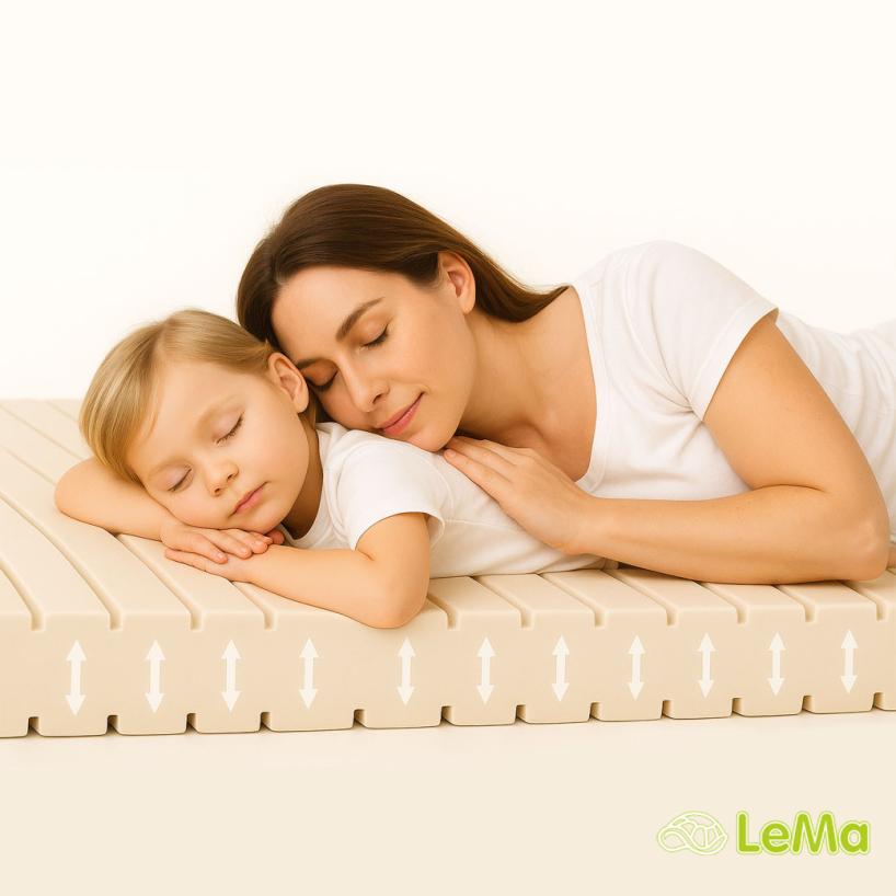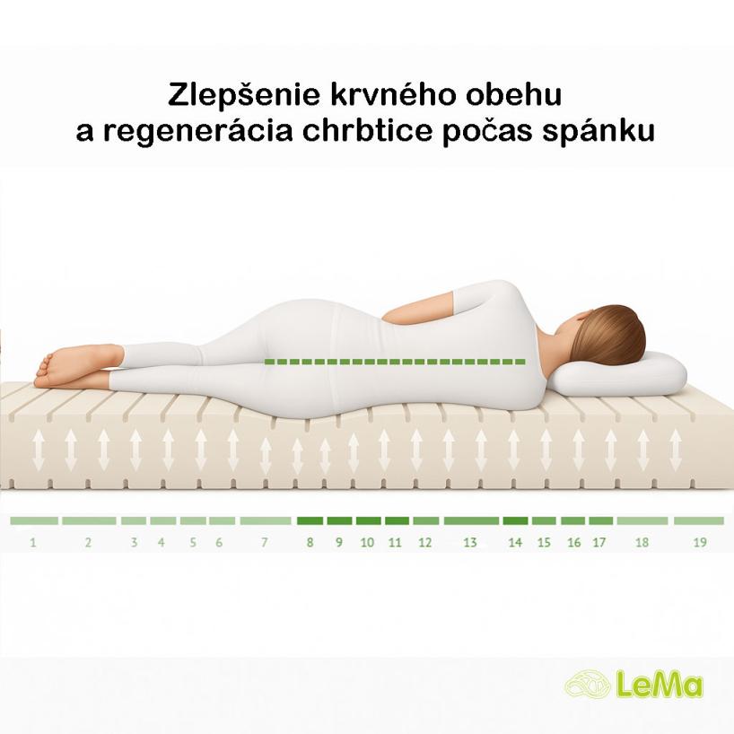 Masážna rebrovitá štruktúra jemne stimuluje svalstvo, pomáha znižovať tlak v oblasti ramien a bedier a podporuje lepšie prekrvenie počas spánku. Vetracie kanáliky zároveň zabezpečujú efektívnu cirkuláciu vzduchu a odvádzanie vlhkosti, čím udržiavajú matrac suchý a hygienický.