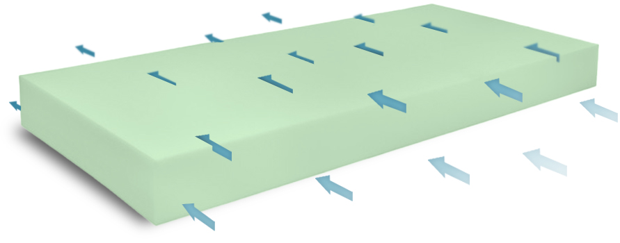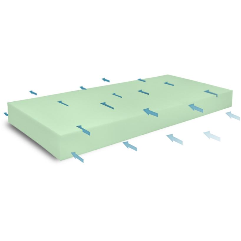 ✔ Priedušná otvorená bunková štruktúra – matrac je plnený vzduchom, čím sa zabezpečuje dokonalá cirkulácia a odvádzanie vlhkosti.