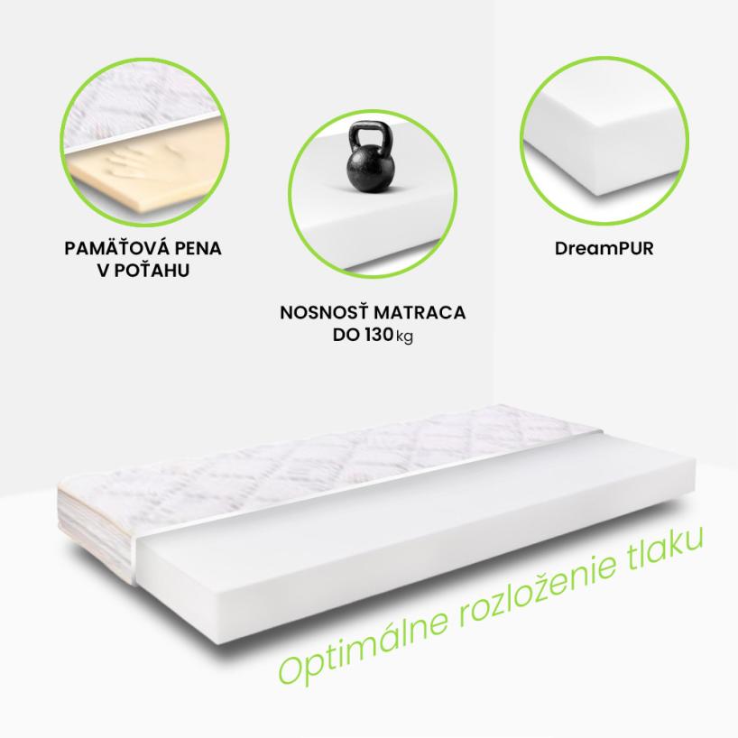 ✔ Jadro z tvrdej ortopedickej DreamPUR peny – poskytuje optimálnu podporu chrbtici, eliminuje tlak na kĺby a zaisťuje stabilnú oporu tela.