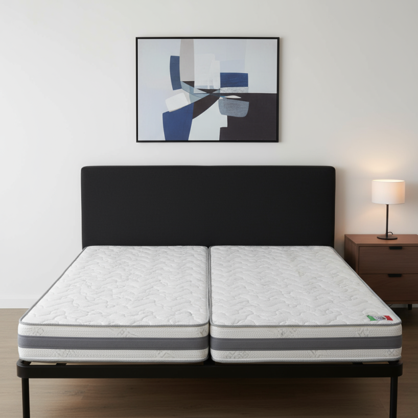 Matrac je obojstranný – jedna strana ponúka o niečo mäkší, druhá pevnejší pocit pri ležaní (tvrdosť 4/5), takže si môžete vybrať tú, ktorá vám vyhovuje najviac. Vďaka výške 25 cm a nosnosti až 150 kg poskytuje matrac maximálny komfort aj pre náročných používateľov.